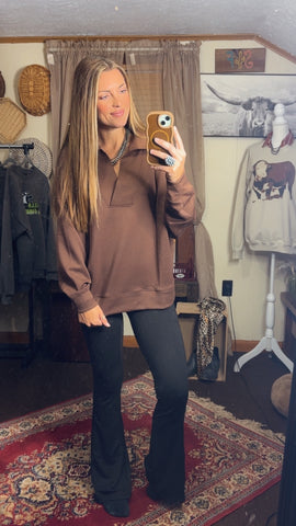 top has a notched neckline and collar
